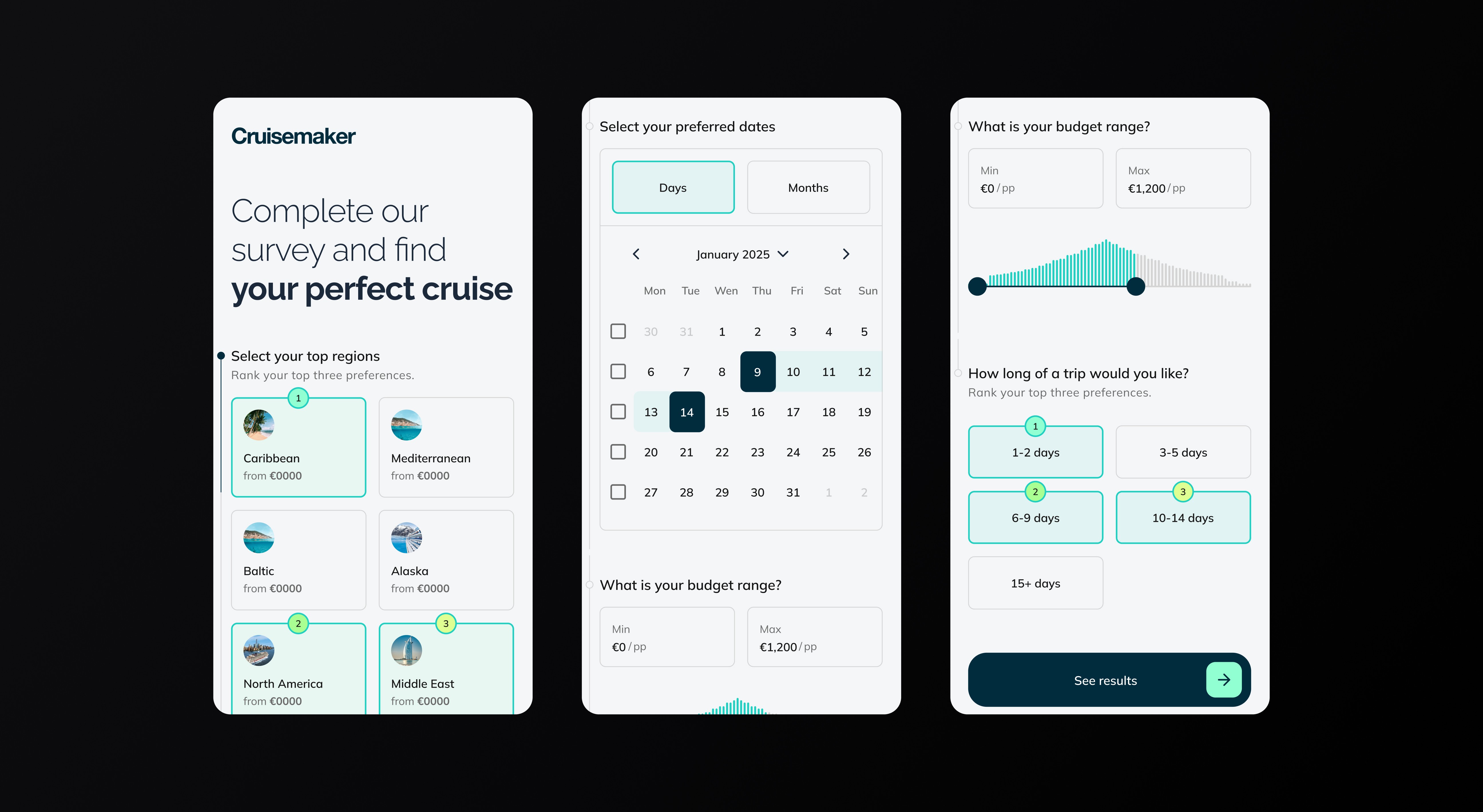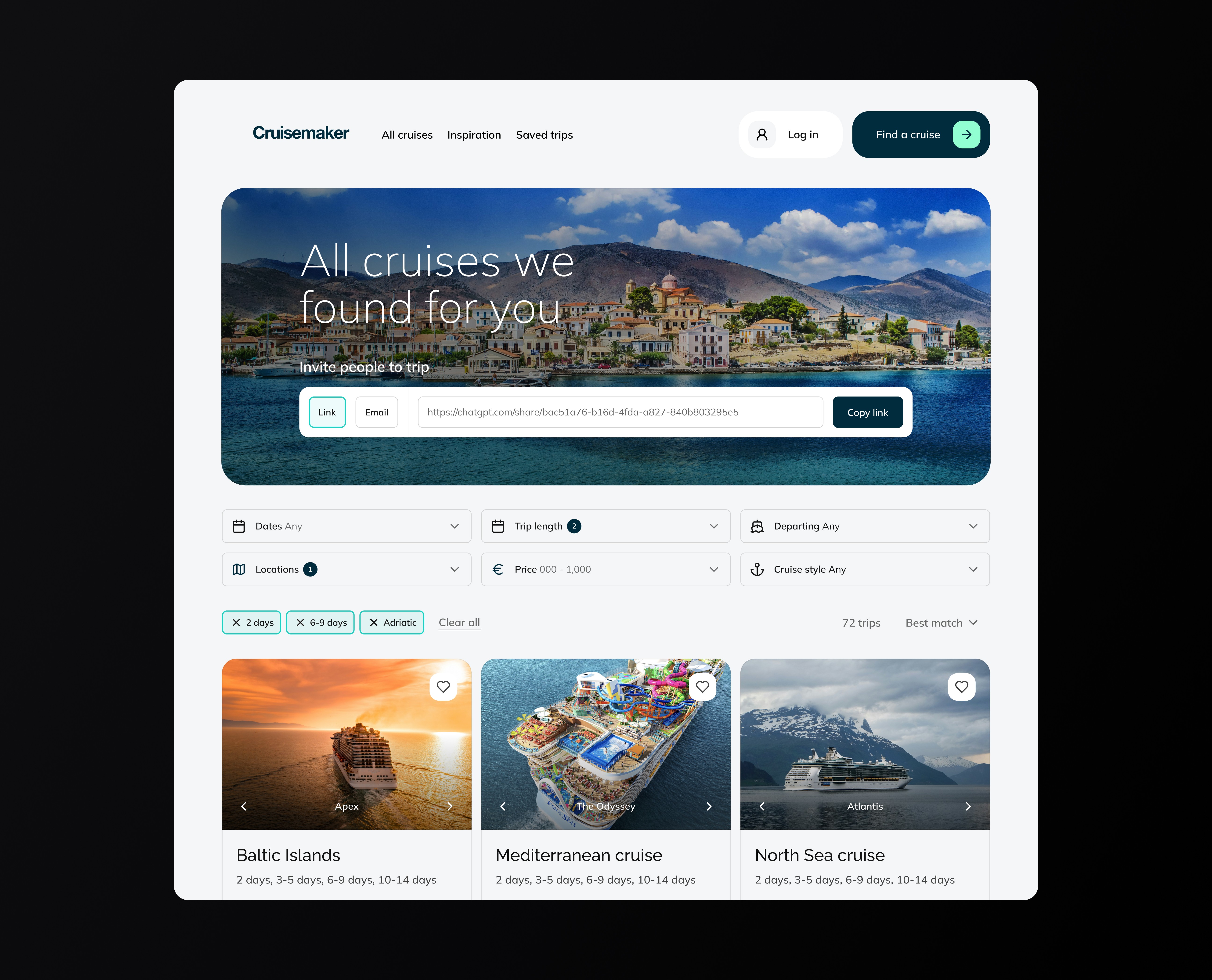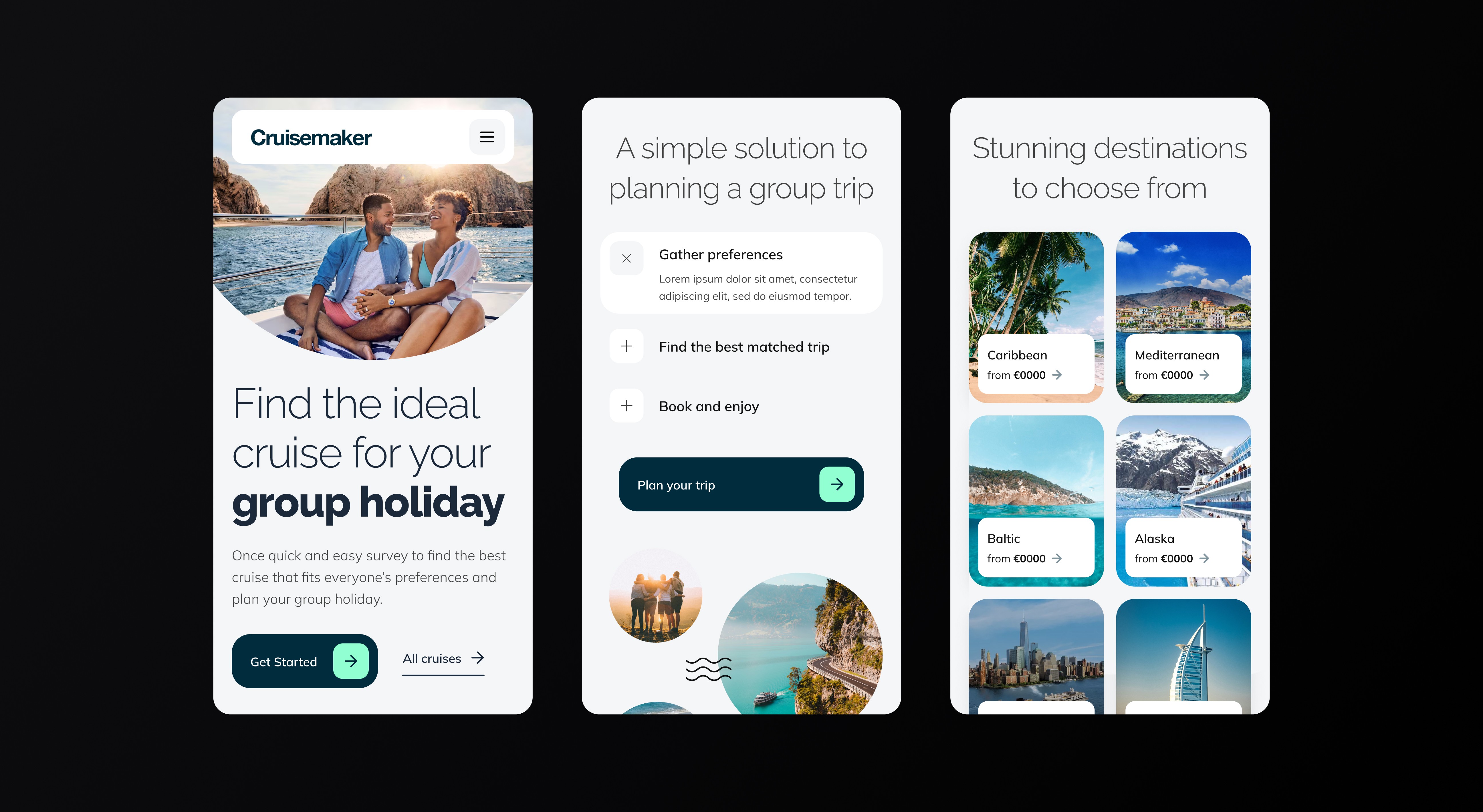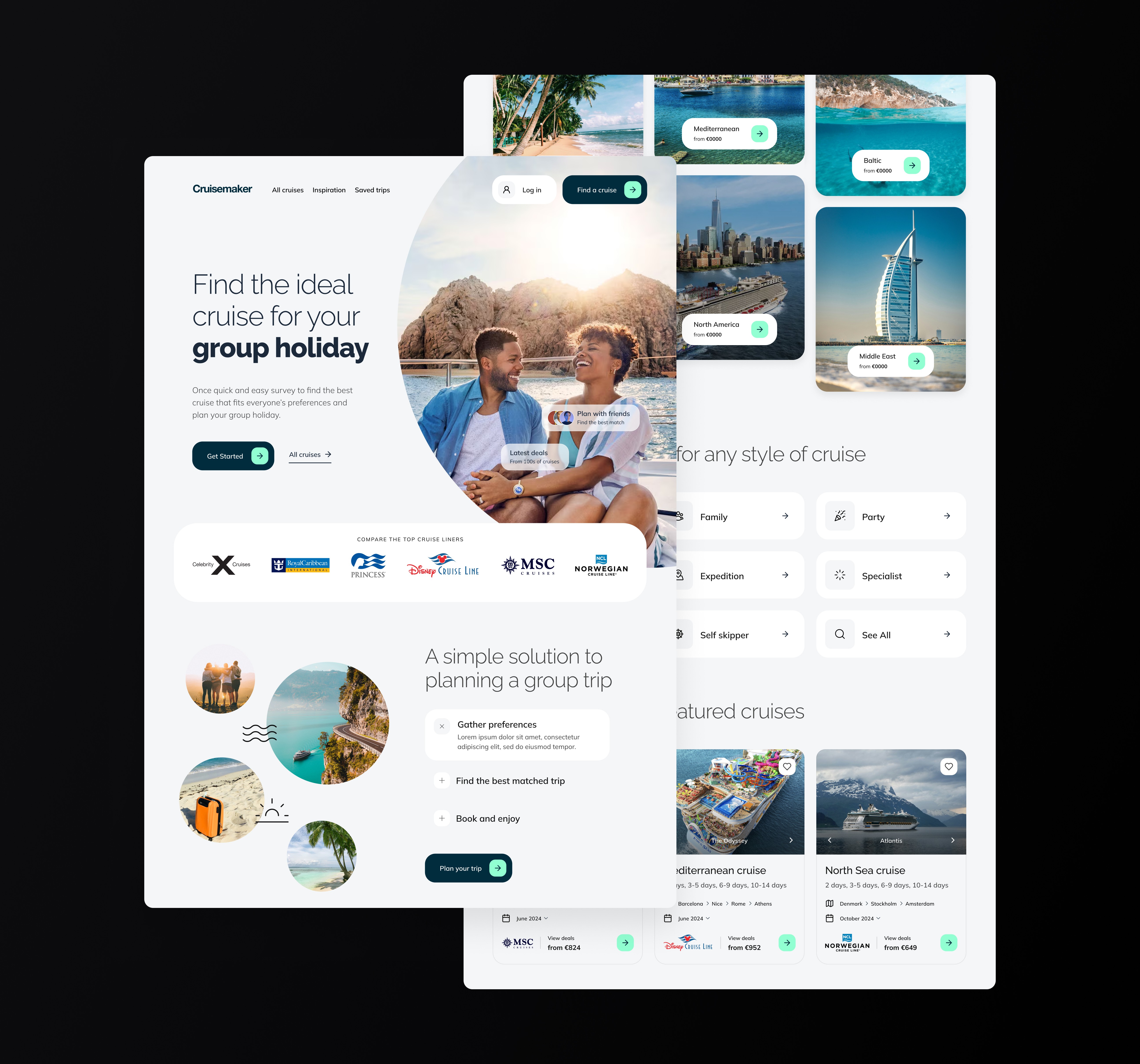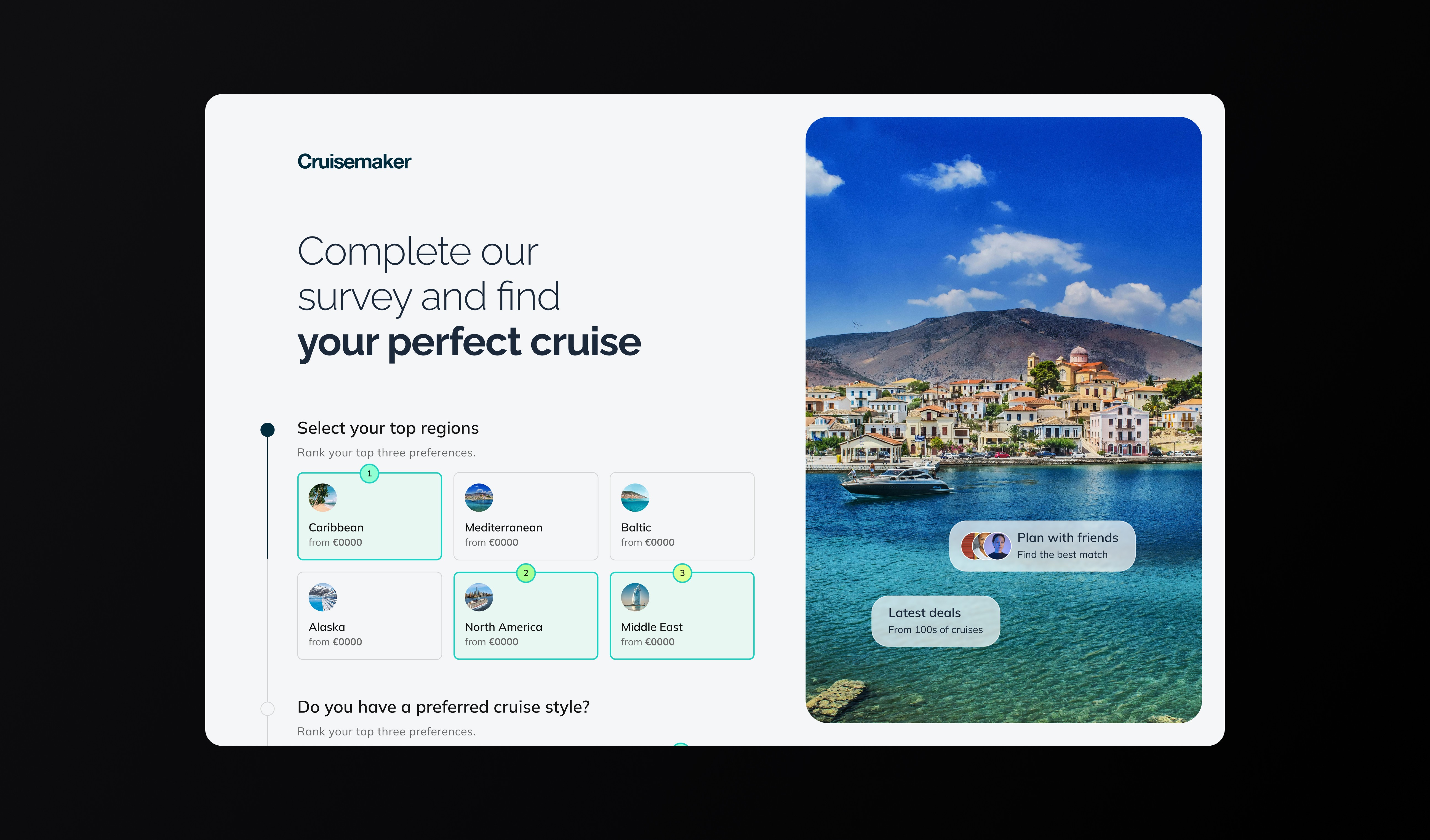 Cruisemaker helps groups agree on a cruise without long chats. I designed a lean MVP: a clear landing, one-page survey, and shareable results that lead to fast decisions.