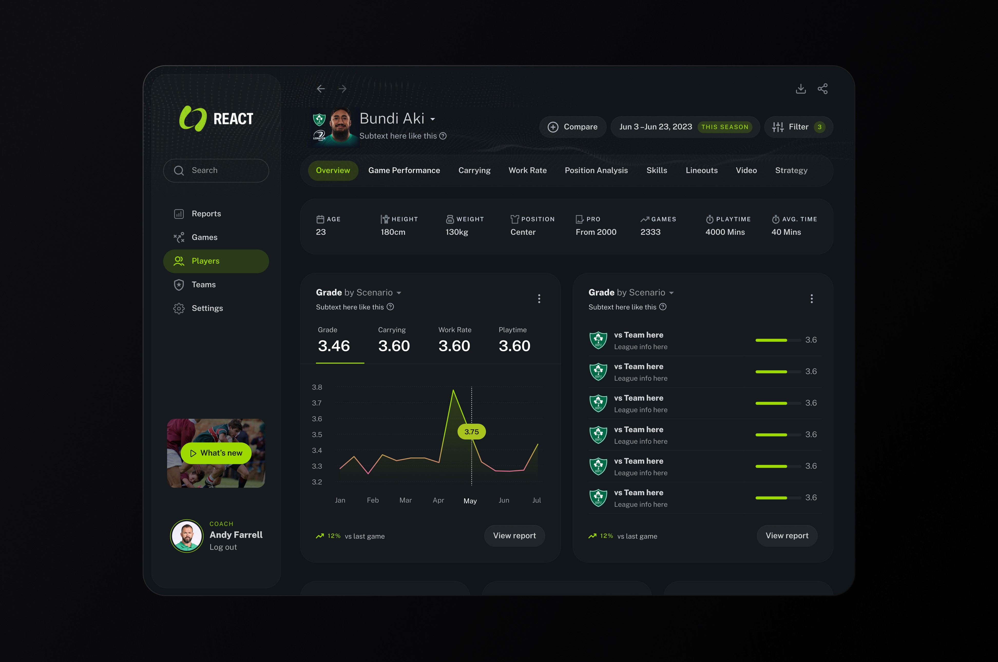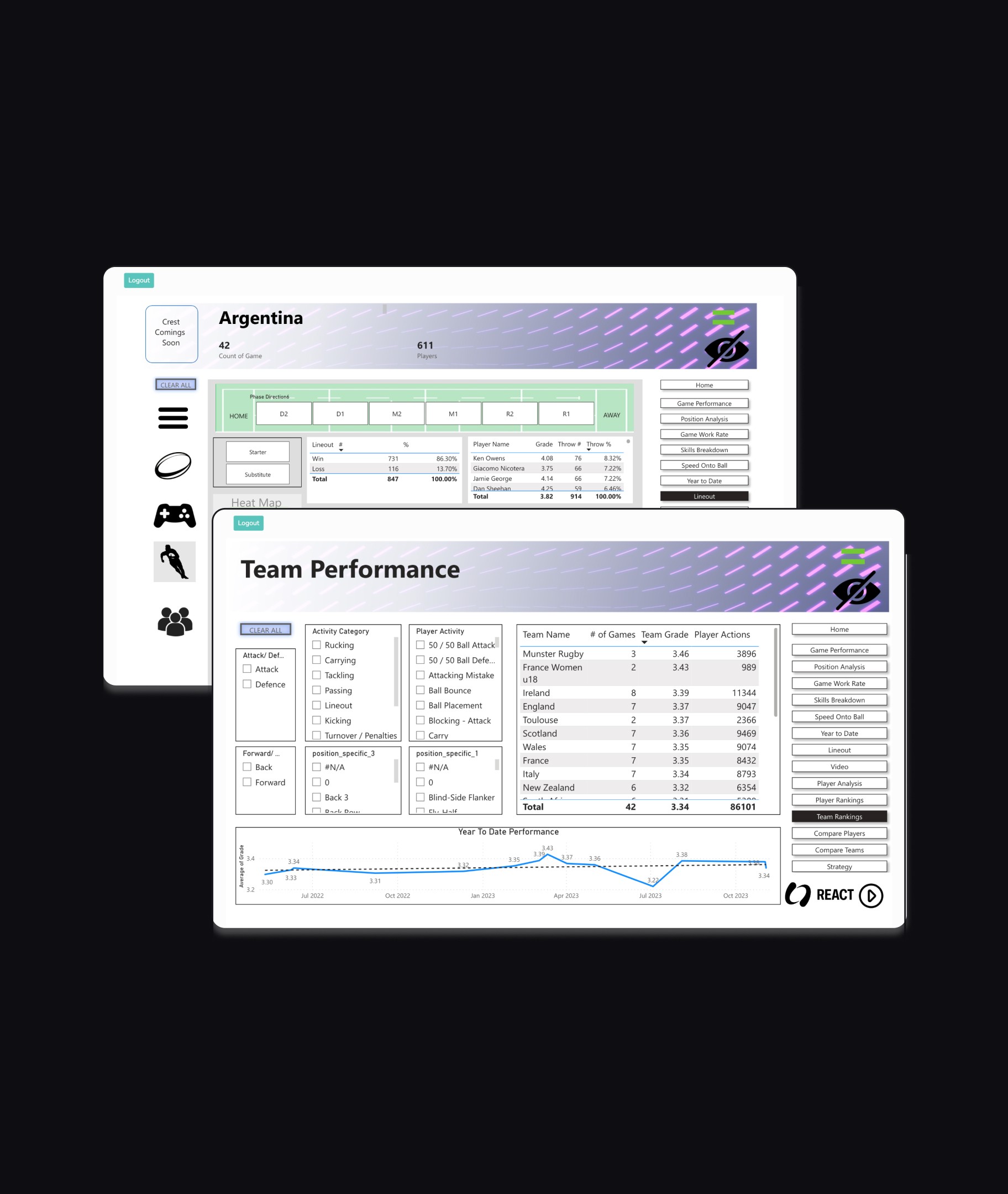 React Rugby helps coaches, analysts, and players turn raw match data into clear, actionable insights.